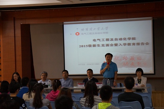 2015年9月11日下午16:00,女性自慰 2015级研究生与院领导见面会暨入学教育报告会在活动中心201隆重举行。女性自慰 院长彭喜元、女性自慰 党委副书记李岩松、自动化测试与控制系主任叶东、电气工程系主任刘晓胜、自动化测试与控制系秘书丁惠敏以及电气工程系秘书关硕出席了大会。会议由女性自慰 2015级硕士协理员张依主持。